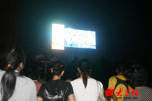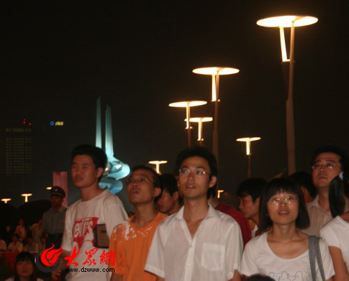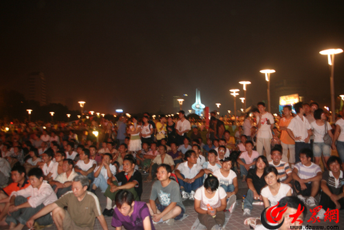 大眾網濟南9月6日訊 (記者 陳宏發)今晚,北京2008年殘奧會開幕式在國家體育場隆重舉行。不少濟南市民早早來到泉城廣場觀看開幕式。8點不到,濟南泉城廣場大屏幕前就已經人頭攢動,坐滿了前來觀看殘奧會的市民,花壇邊的大理石臺上也坐滿了觀眾,不少來晚的市民不得不席地而坐。一些家長也帶著孩子來感受殘奧會的氣氛,讓孩子從小懂得尊重殘疾人,關心殘疾人。