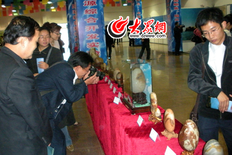24日,長島縣在省科技館舉行“科學發展在長島”招商旅游推介展覽,圖為參觀者用相機記錄下長島特色展品