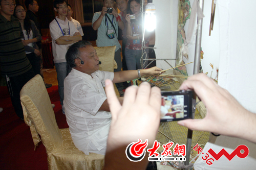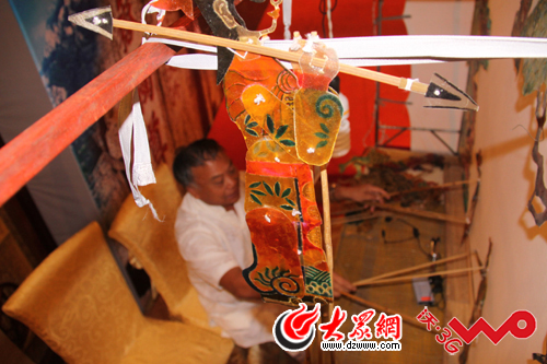 網絡媒體山東行到泰安,65歲的泰山皮影戲藝人范正安也來“湊熱鬧”,他一邊介紹自己的“絕活”,一邊咧著嘴笑,看得出來,他希望更多的人了解、理解、喜愛自己的泰山皮影戲。