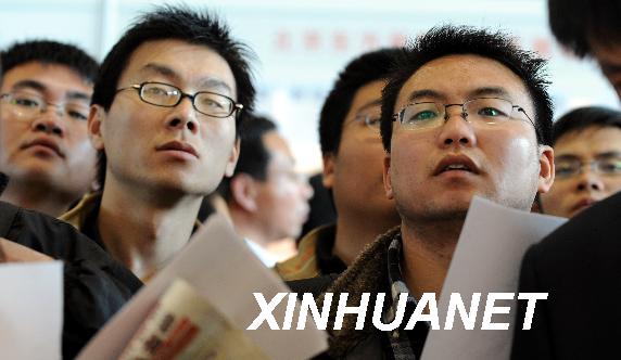資料圖片:2008年4月2日,應聘者在觀看招聘信息。當日,由北京多家人才機構聯合舉辦的京城職場第27屆人才招聘會在北京中國國際展覽中心舉行,470余家單位參加招聘,吸引大批應聘者前來。新華社記者 李文 攝