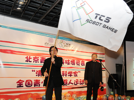 隨后,清華學(xué)者孫增圻教授為開(kāi)幕式致辭,引起了記者的熱切關(guān)注。孫教授結(jié)合國(guó)內(nèi)外機(jī)器人大賽現(xiàn)狀對(duì)本次活動(dòng)做了詳細(xì)闡述和講解,并表示對(duì)即將開(kāi)始的清華少年科學(xué)素養(yǎng)培訓(xùn)全國(guó)青少年機(jī)器人運(yùn)動(dòng)會(huì)充滿期待。孫教授親自為活動(dòng)授旗,正式啟動(dòng)了首屆“清華少年科學(xué)家”全國(guó)青少年機(jī)器人運(yùn)動(dòng)會(huì)!