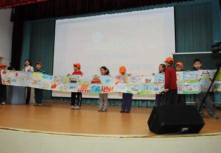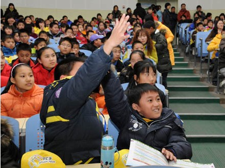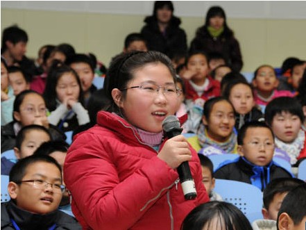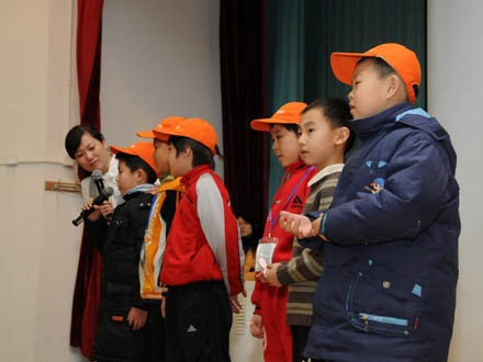 隨后是"考考你,北京知多少"文化交流互動環節。"北京的哪個園林被譽為'萬園之園'?"、"猜猜老北京的方言'套瓷'、'發小兒'是什么意思?"、"京劇臉譜的黑色都表示什么性格的人物?"、"北京奧運會福娃都各自代表什么寓意?" ……北京小朋友的問題一出,下面全國各地的學員們馬上熱烈響應,全場一時熱鬧非凡,笑聲不斷。通過這一環節,全國各地的同學們了解了更多關于北京的知識,也與北京小朋友們很快地熟悉起來,對新環境的陌生感一掃而空。在這種其樂融融的氣氛中,開幕儀式順利落下了帷幕。