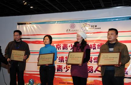 1月19日,首屆“清華少年科學(xué)家”全國青少年機器人運動會閉幕儀式及頒獎典禮在中華世紀壇隆重舉行。來自全國的200多名青少年科技精英通過兩天的激烈角逐,取得了優(yōu)異的成績。中國月球探測首席科學(xué)家、中國科學(xué)院歐陽自遠院士,中國人工智能學(xué)會副理事長、中國自動化學(xué)會機器人競賽工作委員會主任、清華大學(xué)計算機系孫增圻教授,全國信息學(xué)奧林匹克競賽科學(xué)委員會王宏主席,清華大學(xué)繼續(xù)教育學(xué)院青少年素質(zhì)提升中心張大北主任以及清華少年科學(xué)素養(yǎng)培訓(xùn)項目全國授權(quán)推廣中心孫中亮主任等嘉賓出席了本次閉幕式,并親自為獲獎同學(xué)和帶隊老師頒發(fā)了獎狀和豐厚的獎品、獎金。眾科學(xué)泰斗與教育專家更與全國中小學(xué)生親密互動,吸引了眾多媒體的眼球。