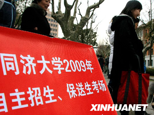 2009年1月2日,考生準(zhǔn)備參加同濟(jì)大學(xué)的自主招生考試。