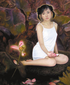 “其實我一開始并不接受給爸爸當人體模特。”李勤說,這批《東方神女山鬼系列》作品創作開始于六年之前,而爸爸第一次提出要她當人體模特時,她一口就拒絕了。李勤說,拒絕的原因其實是因為畢竟難為情———盡管從小就受到畫家父親的耳濡目染,也理解人體模特對寫實油畫創作的重要性,但她還是難以接受。“猶豫了有半年的時間。”李勤說,在這個過程中,恰好張藝謀拍攝的《畫魂》熱映,她看到了潘玉良為藝術而作出的勇敢舉動,想到了父親構思的這個表現東方神女的系列作品是開中國油畫美神系列先河的作品,想到父親構思的人與自然和諧相處的主題,她最終決定了為藝術而獻身。“這個事情,也得到了媽媽的鼓勵和支持。”李勤說,媽媽當時就對她說,真羨慕女兒能把青春年華永遠地留在油畫之上。