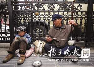 春節前,浩浩跟著爺爺坐了二十幾個小時火車來到南京乞討。浩浩的爺爺說:“同村的人告訴我們,南京人特別善良,不欺負外地人,愿意幫助我們這樣困難的人”。白天,爺孫倆坐在南京街頭,爺爺拉二胡賣藝乞討。老人拉了一曲《繡金匾》,“正月里鬧元宵,金匾繡開了……”摸著陳舊的二胡,老人不好意思地笑了,“這手藝好些年不碰了,曲子都是自己摸索出來的。”