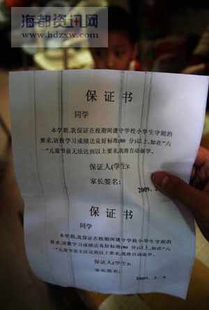 小學(xué)教師逼“差生”簽保證書(shū) 不達(dá)標(biāo)將退學(xué)