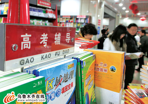 資料圖片:2月2日,顧客在新華書店烏魯木齊購書中心選購高考輔導類書籍。 記者 張鵬攝