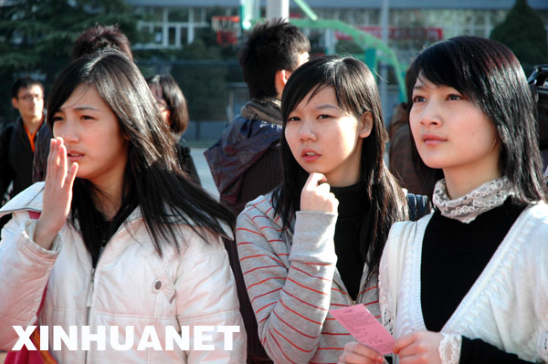 資料圖片:2月11日,考生在北京電影學院操場上查看進入復試的榜單。據介紹,2009年北京電影學院表演學院本科計劃招生從去年的30人擴大到75人,但暫停高職招生。表演學院2009年共有4300多名考生報考,本次初試共1500多名考生通過。新華社記者白瀛 攝