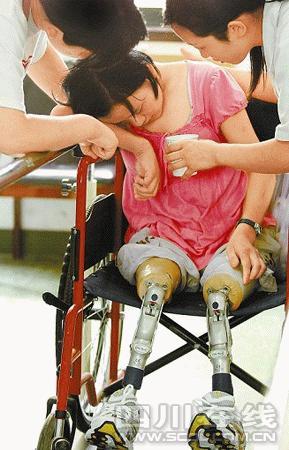 2008年9月10日,她忍著劇痛第一次借助假肢站立起來。事后,她用短信把這個消息告訴了已經上課的同學。