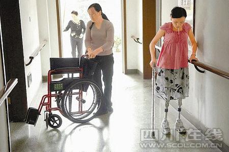 2008年8月初轉院至成都的張鳳,是在省肢殘康復中心里呆得最久的傷員,她曾以為自己重新站立是一種奢望。