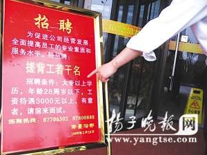 揚(yáng)州一家大規(guī)模浴場(chǎng)20日打出一則很“!钡膹V告:招聘搓背工,要求學(xué)歷最低大學(xué)?啤V告一出,業(yè)內(nèi)嘩然,搓背工要求大專文憑,這在“沐浴之鄉(xiāng)”揚(yáng)州還是破天荒頭一回。該浴場(chǎng)稱此舉是為“提升揚(yáng)州沐浴層次”,但不少同行認(rèn)為是“炒作”、“玩噱頭”,讓大學(xué)生當(dāng)幾無(wú)文化要求的搓背工,實(shí)在是人才浪費(fèi)。記者昨日獲悉,廣告打出幾天時(shí)間,已有超過(guò)50名當(dāng)?shù)貙?聘咝?yīng)往屆畢業(yè)生前來(lái)應(yīng)聘。