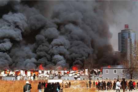 昨天(16日,下同)上午10點09分,中央美院南門外的學生宿舍起火。不到半小時,這片建筑面積4300平方米的二層彩鋼板臨建房大部分變形倒塌。倉促逃離火海的學生還穿著睡衣。