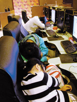 資料圖片:眾多年輕人通宵泡在網(wǎng)吧