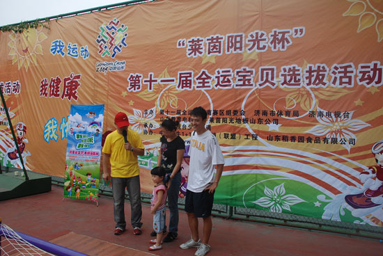 第十一屆全運(yùn)會(huì)到來之際,為了營(yíng)造“迎全運(yùn)、講文明、樹新風(fēng)”的良好氛圍,濟(jì)南電視臺(tái)少兒頻道積極響應(yīng)“和諧中國(guó),全民全運(yùn)”的號(hào)召,在全省范圍開展“萊茵陽(yáng)光杯”第十一屆全運(yùn)會(huì)全運(yùn)寶貝選拔活動(dòng)。