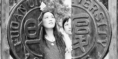 兩位復旦大學學生在學校門前佇立 夏云鵬攝