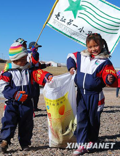 1999年,一群善良、執著的孩子在老師的帶領下,成立了唐古拉山鎮志愿環保小衛隊。沱沱河畔,一雙雙小手不分寒暑地撿拾著垃圾。目前,唐古拉山鎮長江源民族小學在讀的29名小學生全部是小衛隊的成員。他們年齡從6到12歲不等,全部為藏族孩子。