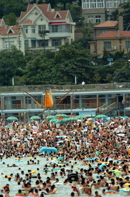 Qingdao bathing beach thronged with swimmers
