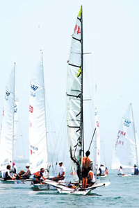 Sailors train on the sea in Qingdao, Shandong Province, July 10, 2008.[China Daily]