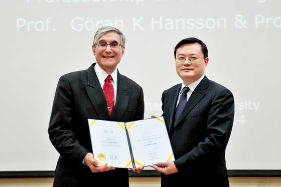 Zhang Rong presents the honorary professor letters of appointment to Professor Goran K Hansson.