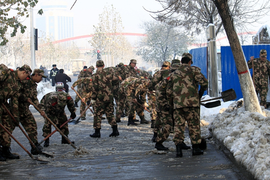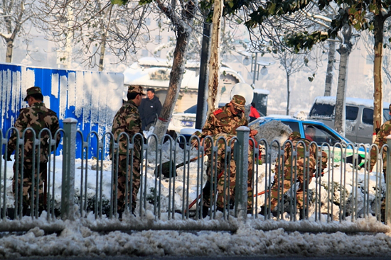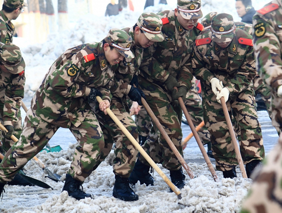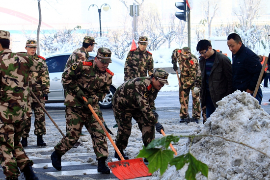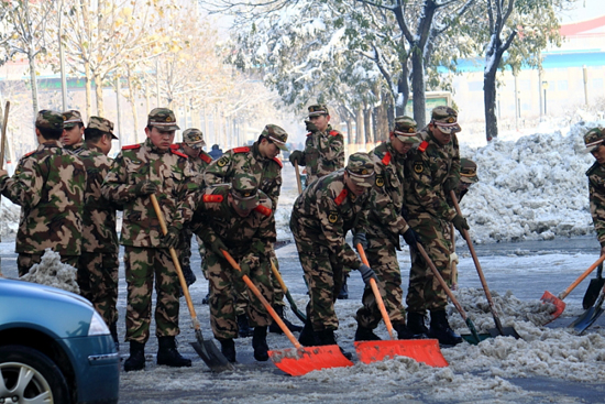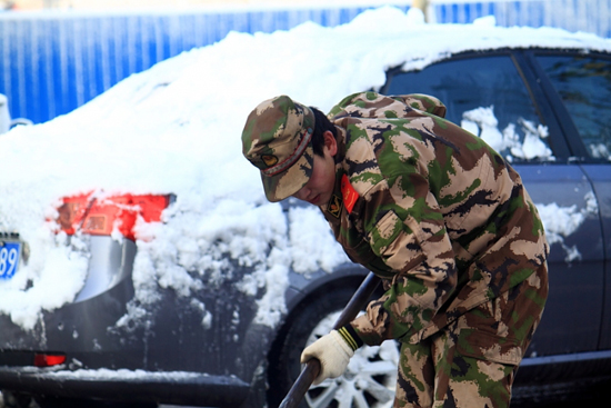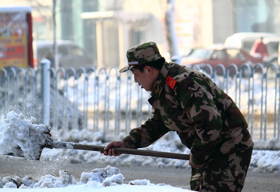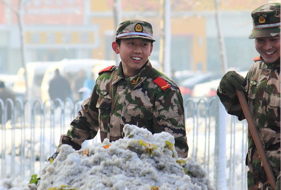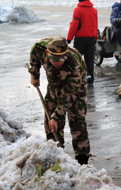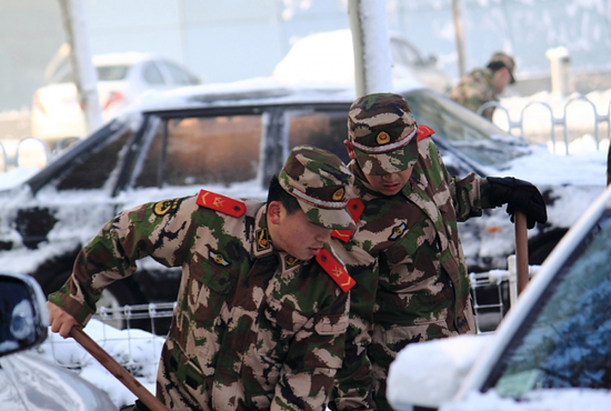 [提要] 雪下的真大,給出行的市民帶來(lái)了諸多的不便,又看到可愛(ài)的戰(zhàn)士們?yōu)槿嗣穹⻊?wù)的場(chǎng)景。