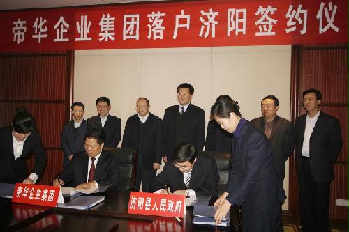 1月19日,帝華集團落戶濟北開發區簽字儀式隆重舉行。濟陽縣領導張新文、張海波、葉維平、孫學君出席簽字儀式。