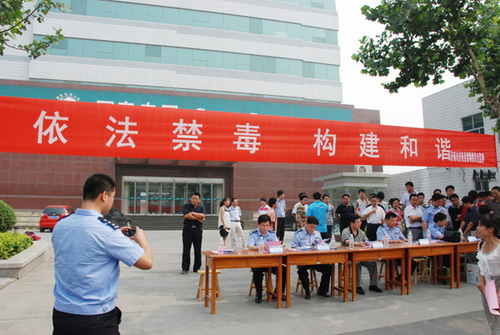 6月26日是第23個國際禁毒日。為進一步提高廣大群眾的識毒、拒毒、防毒意識,全面發(fā)動人民群眾積極參加禁毒人民戰(zhàn)爭,營造全民禁毒的濃厚氛圍。當天,濟陽縣公安局在中國銀行廣場組織開展紀念“6.26”國際禁毒日宣傳教育活動。縣委常委、政法委書記劉佩祿、縣公安局趙建凱局長、市公安局禁毒支隊有關負責人等出席活動,禁毒委各成員單位負責人、禁毒志愿者、易制毒化學品生產(chǎn)經(jīng)營企業(yè)代表,社會各界人士300余人參加了紀念“6.26”國際禁毒日宣傳教育活動。