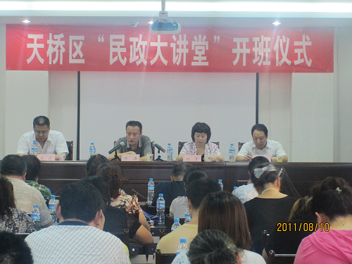 為認真貫徹胡錦濤總書記在慶祝建黨90周年大會上的講話精神和中央、省、市關于加強和創新社會管理的戰略部署,進一步推動“深入基層、服務群眾”活動扎實有效開展,探索建立區、街、居三級“一站式、全員化”民政服務新模式,天橋區民政局決定自8月初起到10月底,在全區民政系統開展“民政大講堂”系列學習活動,主要圍繞全區基層政權與社區建設、社會事務、救災救濟、雙擁工作、優撫工作、婚姻登記、黨風廉政建設等各項民政重點工作,推行全區綜合民政事務“一站式、全員化”服務新模式。