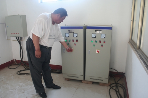 圖2:工作人員在操作變頻控制柜,啟動(dòng)設(shè)備、控制管道壓力。