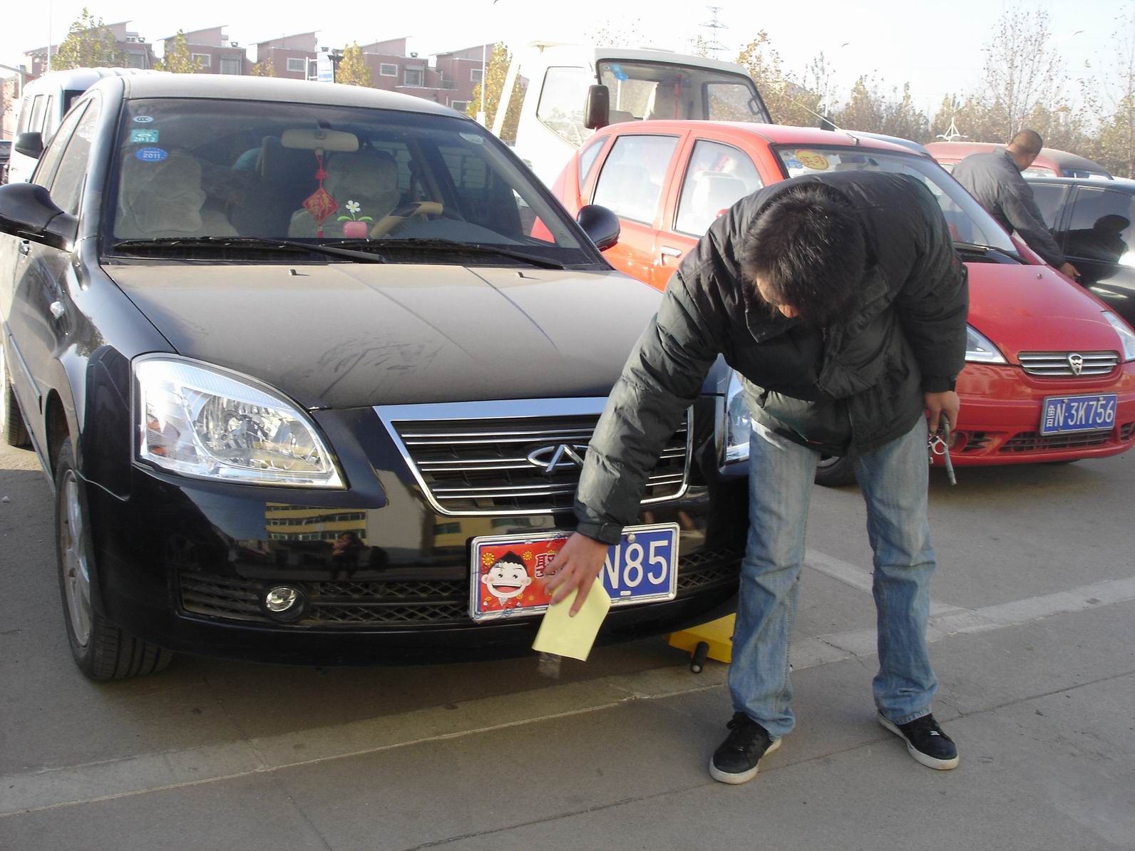 11月22日上午,一輛奇瑞轎車前后牌照帖著即時帖停放在交警隊院內,車主朱某去車管業(yè)務大廳辦理業(yè)務,違法處理辦公室民警利用鎖車器將其車鎖住。朱某辦完業(yè)務一看,無奈到違法處理辦公室接受處理。原來朱某是平原縣平原鎮(zhèn)人,10月份剛買的新車辦了牌照,一大早幫朋友娶完媳婦,就到交警隊辦理業(yè)務,想到明天還接了一個娶媳婦的活,就想著喜帖先帖著吧,省得揭下來明天再帖。民警告訴朱某,無論什么事情,什么時候,法律都不允許故意遮擋號牌上路,即使是娶媳婦,隨后對朱某按故意遮擋號牌依法進行了處罰。