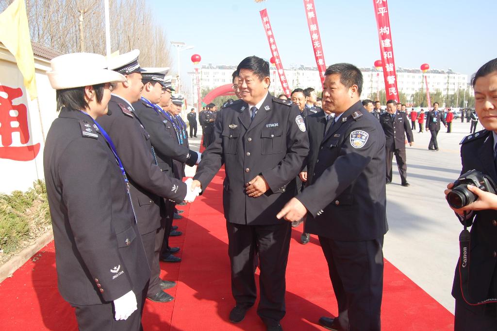 省公安廳交警總隊副總隊長萬波,公安局副局長、交警支隊長王琦,市公安局副局長于風祥、市公安局黨委委員、政治部主任李俊杰、市公安局法制處處長李志勇,縣委副書記、縣長馬善軍、縣委副書記楊杰及支隊黨委成員、各科(處)室主要負責人、各縣(市)大隊、高速各大隊、直屬各大隊大隊長及規范執法辦公室主任應邀參加啟用儀式。