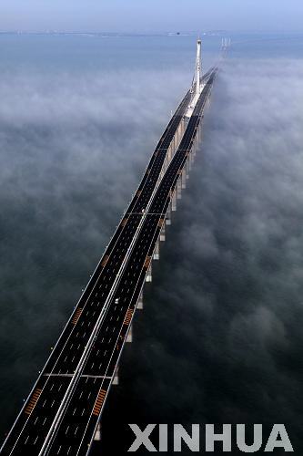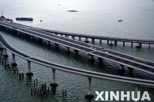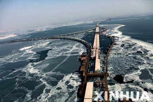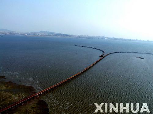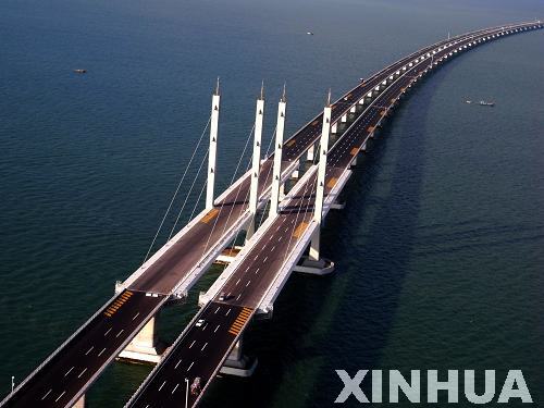 新華網(wǎng)山東頻道7月1日電 2011年6月30日,青島膠州灣大橋正式通車,這是我國北方冰凍海域首座特大型橋梁集群工程,是國道主干線青島至蘭州高速公路的起點段,大橋全長36.48公里,是目前世界上已建成的最長的跨海大橋。大橋起于青島市東部高科園,跨越膠州灣,在黃島側(cè)與已建成的濟(jì)青南線順接,使青島、黃島和紅島實現(xiàn)“品”字形連接。大橋為雙向六車道高速公路兼城市快速路八車道,設(shè)計行車速度80公里每小時,橋梁寬度35米,設(shè)計基準(zhǔn)期100年。
