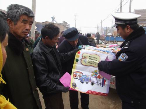 1223上午,該市交警大隊組織民警來到該市禹茌路沿線的趙莊大集上開展交通安全宣傳活動。民警們通過組織農民群眾觀看交通安全知識宣傳掛圖,發放安全出行宣傳材料,結合剖析和講解近年來發生在轄區農村道路上一些典型的交通事故案例,提醒農民朋友騎車、乘車外出途中應當格外注意交通安全。民警們還針對進入冬季后降雪等惡劣天氣增多安全出行隱患加大的實際,提醒廣大農村群眾掌握一定的雪天安全出行知識,確保自身交通安全。