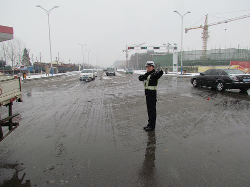 2月13日,德州市普降小到中雪,路面濕滑,給車輛和行人出行帶來了不便。持續(xù)的惡劣天氣在危害交通安全的同時,也給路面執(zhí)勤工作加大了難度和壓力。直屬一大隊立即啟動惡劣天氣道路交通管理工作應(yīng)急預(yù)案,最大限度地把警力投入一線,采取固定執(zhí)勤和巡邏執(zhí)勤相結(jié)合的方式,加大對城區(qū)重點路口、路段、事故多發(fā)地的管控力度,實行燈控與人控相結(jié)合、定點與流動相結(jié)合、警燈與提示哨聲相結(jié)合的方法,加強對過往車輛的指揮疏導(dǎo),提醒過往司機雪天減速慢行,保持安全車距,注意行車安全,最大限度地預(yù)防和減少交通事故的發(fā)生,提高道路通行效率。期間,直屬一大隊累計出動警力38人、警車8輛,在全體民警的共同努力下,轄區(qū)路段沒有發(fā)生一起交通事故和交通堵塞,確保了轄區(qū)路段的安全、暢通。