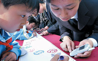 師生開動腦筋一起創作條條“文明短信”,發給老師、家長和朋友,