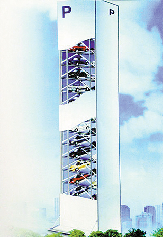 據(jù)了解,這個(gè)停車塔采用鋼架結(jié)構(gòu)、電腦控制,可同時(shí)停泊280多輛轎車,將成為全國(guó)最大的立體停車場(chǎng)。圖為預(yù)計(jì)今年7月投入使用的立體停車塔效果圖。   (臧磊)