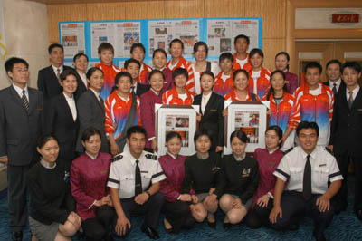 在本次接待工作中,銷售部在做好統籌安排的同時,對細節亦不放松。經酒店美工精心設計的席簽竟成了傳遞友情的"留念冊"。女子團體射箭銀牌得主張娟娟請大眾報業集團黨委書記、董事長徐熙玉,大眾報業集團黨委副書記、總編付紹萬簽字留念后,將印有自己照片的席簽小心翼翼的收藏起來(P圖),就餐的嘉賓也紛紛請奧運健兒在自己的席簽上簽字留念。