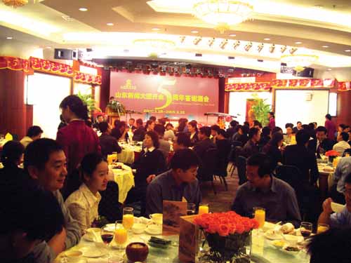 中圖:山東省旅游局副局長祝利民女士在酒會上講話,肯定了新聞大廈開業(yè)五年來取得的成績,表示這既是新聞大廈的一大喜事,也是旅游界的一件喜事,希望新聞大廈一如既往,與時俱進(jìn),以人為本,持續(xù)發(fā)展,進(jìn)一步加強服務(wù)設(shè)施建設(shè),提高管理和服務(wù)水平,為發(fā)展我省的旅游業(yè),為建設(shè)和諧社會做出新的貢獻(xiàn)。