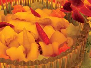 魯菜,豪爽中透著一股霸氣,調和五味,與山東大漢直爽的性格相得益彰;粵菜,選料精細、口味考究,雖不像川菜那樣爽直,卻以其婉約細膩的風格舒展著您的味蕾,如同一股清泉注入身心,清新爽快;川菜,則紅紅火火、熱情奔放,帶給您酣暢淋漓的感覺,如同看到自己崇拜的球星進球一樣痛快,讓您的每個毛孔都迸發出積聚許久的熱情。魯、粵、川經典菜品相搭配,美滋美味的感覺與看世界杯賽事一樣,令您欲罷不能!