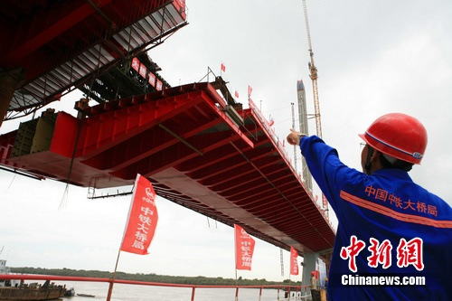 中新社武漢8月10日電 (舒智明 辛海蛟 徐金波)記者從位于此間的中鐵大橋局集團獲悉,10日凌晨5時18分,由該局承建的黑瞎子島烏蘇大橋最后一節(jié)段鋼混梁成功焊接到位,宣告這座連通黑瞎子島與中國內(nèi)陸,被譽為“神州東方第一橋”的公路橋順利合龍。