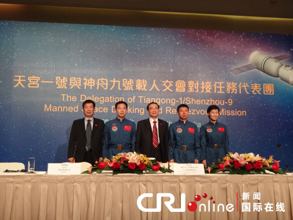 當天下午,代表團團長、中國載人航天工程副總指揮牛紅光,中國載人航天工程總設(shè)計師周建平,以及神舟九號三名航天員景海鵬、劉旺、劉洋與香港媒體見面。