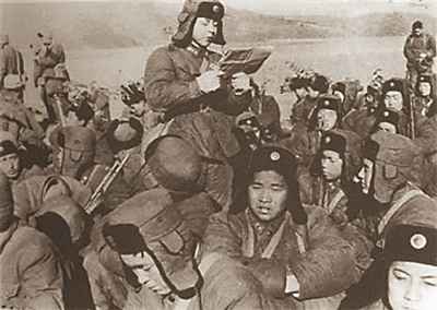 戰友們休息時,雷鋒抓緊時間為大家念報紙。 (來源:工人日報)