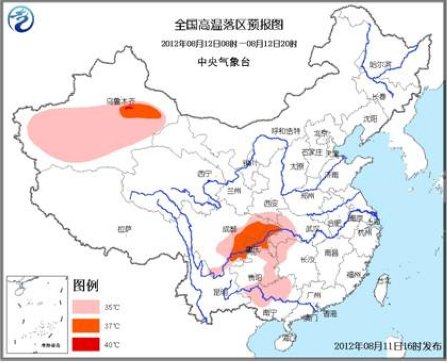 此外,未來三天,四川盆地、重慶、湖北西部將持續35℃以上高溫天氣,部分地區最高氣溫可達37~39℃,請上述地區的居民注意防暑降溫。