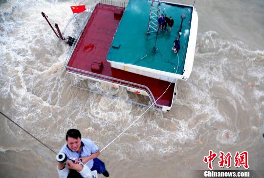 中新網煙臺8月12日電(馮小熒 楊兵)記者12日從位于此間的交通運輸部北海救助飛行隊獲悉,一艘江蘇籍砂石船“江順65”因遭遇大風12日在河北滄州外海擱淺,5名船員遇險。交通運輸部北海救助飛行隊派出救助直升機緊急救助,在大風浪中成功救起這5名遇險人員。