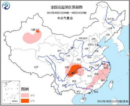 明天白天,四川盆地東部、重慶、湖北西部、浙江、江西大部、 福建中北部等地將有35℃以上高溫天氣,四川和重慶的部分地區(qū)最高氣溫可達(dá)37~39℃。