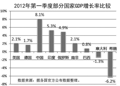 王小廣:有些悲觀主義者特別看空中國,實際我們相對于世界其他國家還是好的。今年上半年,世界工業生產反彈受挫,貿易繼續走弱,消費趨向低迷,就業市場復蘇遭遇挫折,各主要經濟體經濟增速普遍明顯放緩。一季度,美國GDP環比增長1.9%,預計二季度環比增長1.6%;歐元區一季度GDP環比零增長,預計二季度環比下降0.3%;日本一季度GDP環比增長1.2%,預計二季度環比增長0.2%。不僅發達經濟體困難重重,就連新興經濟體也出現較大起伏。