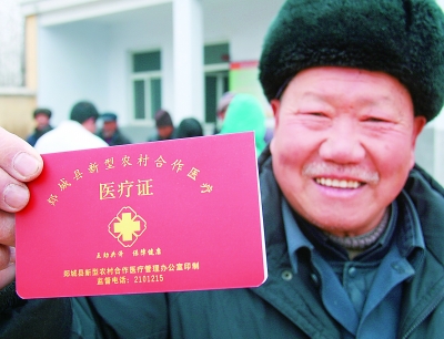 山東省郯城縣郯城鎮(zhèn)富強(qiáng)村農(nóng)民王永健展示剛領(lǐng)到的新農(nóng)合“一卡通”。資料圖片