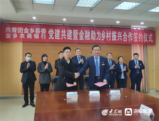 為深入貫徹新發(fā)展理念,服務(wù)鄉(xiāng)村振興,全面深化銀團(tuán)共建,實(shí)現(xiàn)組織聯(lián)建、活動(dòng)互聯(lián)、資源共享。近日,金鄉(xiāng)農(nóng)商銀行與共青團(tuán)金鄉(xiāng)縣委舉行了黨建共建暨金融助力鄉(xiāng)村振興戰(zhàn)略合作簽約儀式。