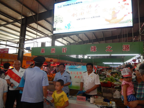 青島交運(yùn)興山路農(nóng)貿(mào)市場(chǎng)舉辦主題為“共創(chuàng)食安城市”活動(dòng)