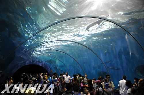7月19日,游客在極地海洋世界內(nèi)參觀游覽。